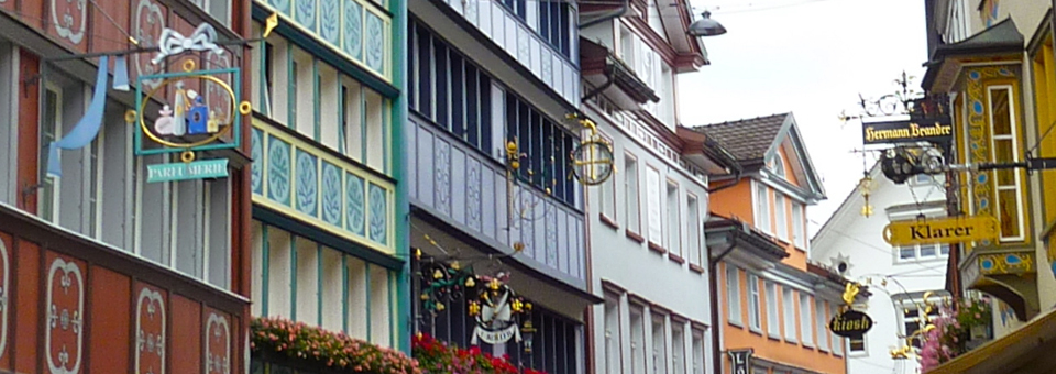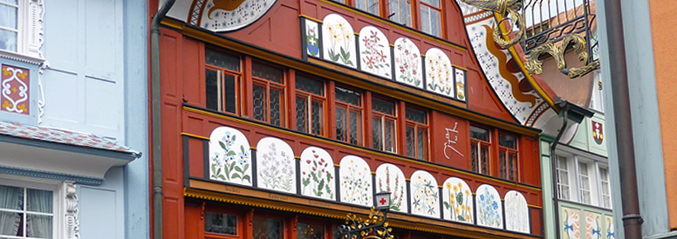 One of our favorite places in Switzerland is the traditional Appenzell, in the eastern part of Switzerland, south of Lake Constance. It is hill country at its finest and best known for its colorfully painted wooden buildings, the musical sounds of yodelers, dulcimers, giant-sized cowbells, and alphorns, and dairy farmers.