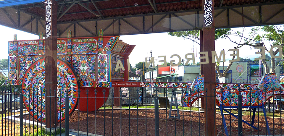We returned to the Cunard’s Queen Elizabeth through Sarchi, an town known for its handicrafts and painted carreta, or ox carts, used in the 19th century to as family transportation and to bring hand-picked coffee beans to market. Farmers began to paint them in bright colors. Increasingly complicated and prestigious designs were added.