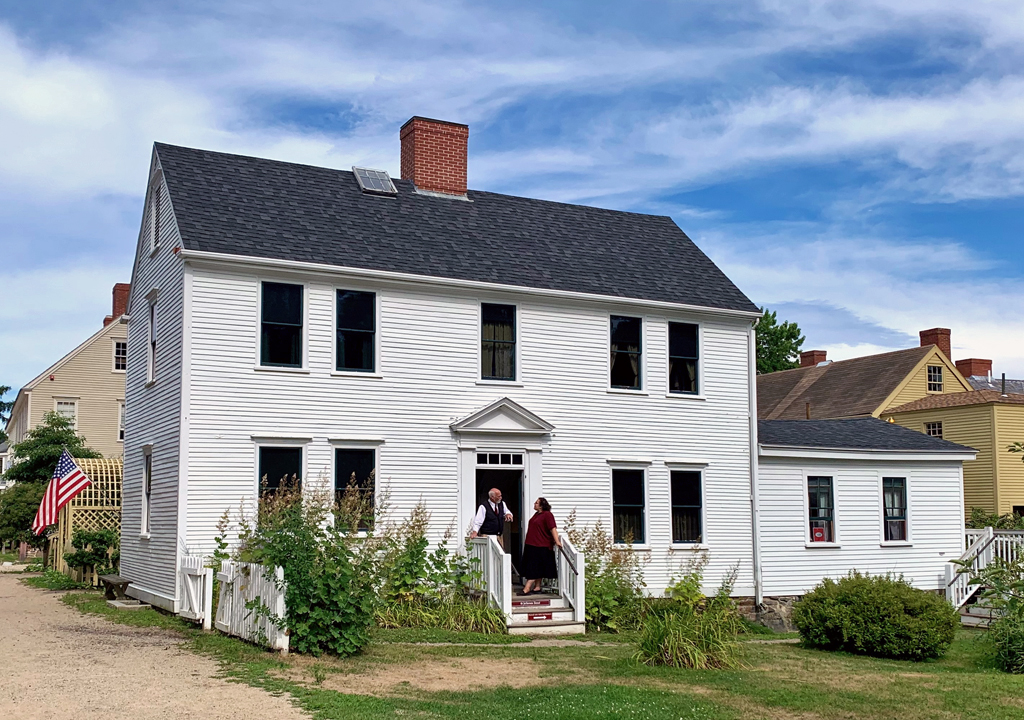 Buildings open to visitors display flags outside that are of the period of the furnishings inside. Exhibition homes, like the Jones House Discovery Center that now features an exhibit on the Wabanaki people “Peoples of the Dawnland,” have artifacts behind glass. There are also demonstrations of traditional crafts.