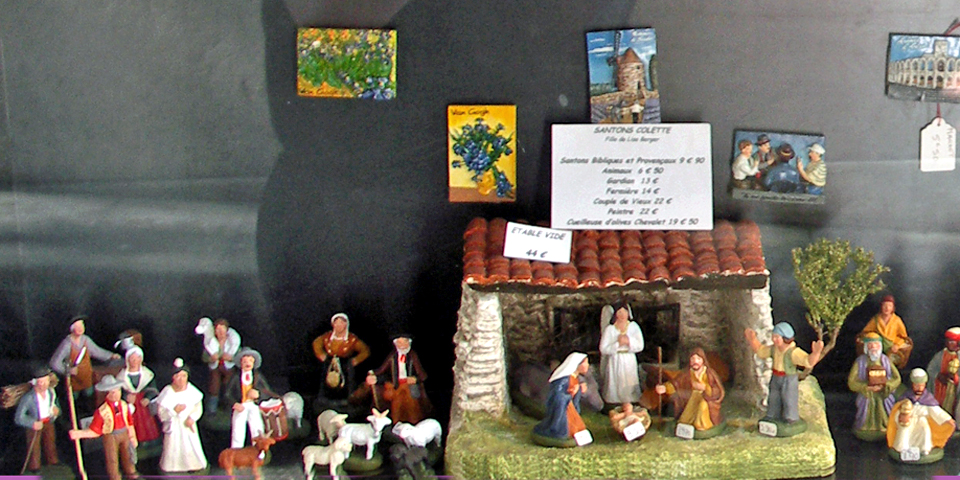 A French home, regardless of religion, is not complete without a crèche of hand crafted santons. Choose your favorite villager—the baker, postman, miller, blind man—and create your own scene.