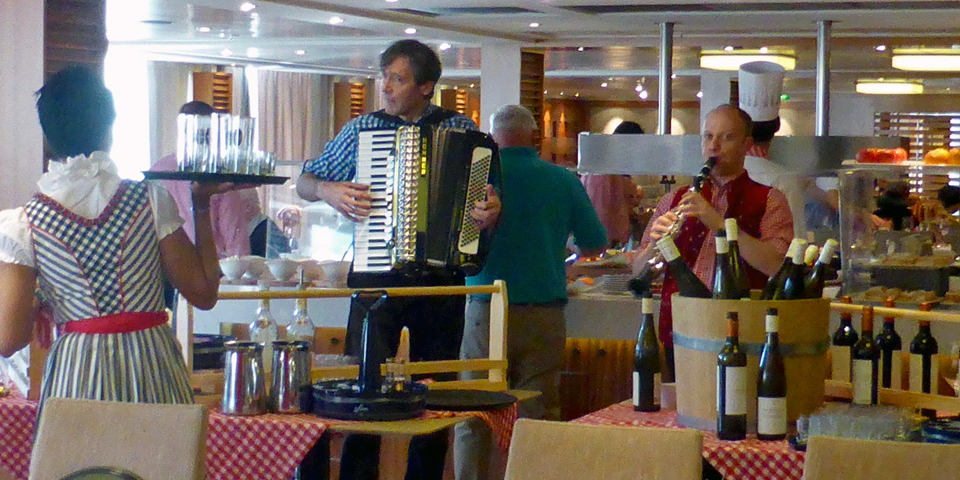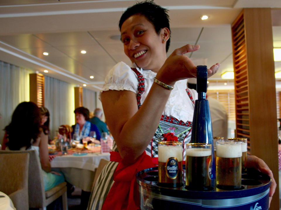 Taste of Germany night was a fun fest, with staff in dirndls and lederhosen, kitchen tours, and local musicians.