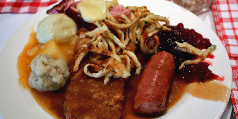An array of German wines, beers and schnapps complemented traditional favorites like pork knuckles, sausages, dumplings, sauerkraut and strudel.