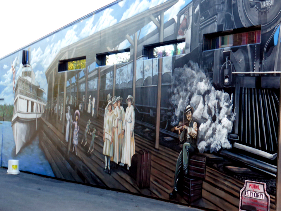 mural depicting early forms of transportation for vacationers, Clayton, New York