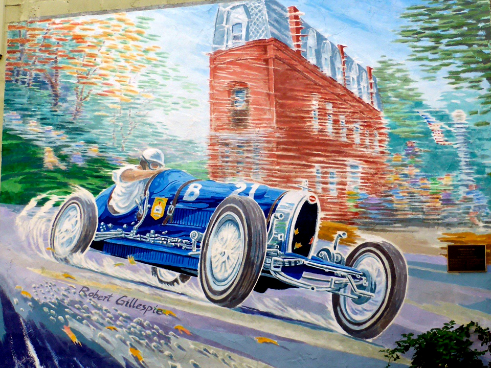 Watkins Glen murals like this one of Bill Miller’s Bugatti 35A depict the history of the sport for which the village is known