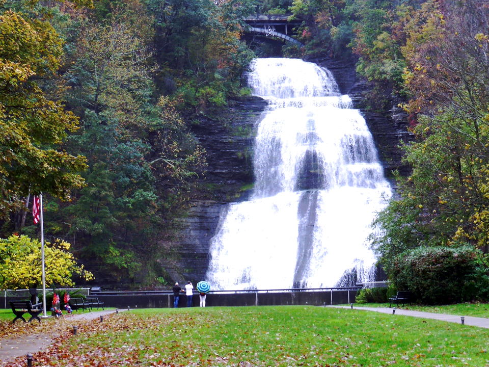 In 1863 Watkins Glen was a scenic international tourist attraction, a private resort with lodging and dining. The automobile made public lands accessible. People dressed in their finest to walk the winding paths that led to formal fountains and flower beds, and live music at the bandstand. The state of New York bought what is now Watkins Glen State Park in 1906.