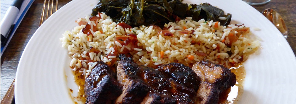 Try specialties like the cinnamon chili rubbed pork tenderloin with apricot-orange glaze, collard greens, and bacon rice pilaf ($15) in the Old World-style Chateau Restaurant.