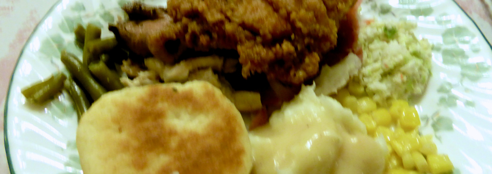 It’s all-you-can-eat family-style southern comfort food including fried chicken, country ham, mashed potatoes, buttermilk biscuits, gravy, apple butter, home cooked vegetables, and ice cream topped cobbler.
