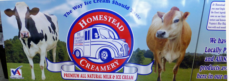 Homestead Creamery in Wirtz is the local choice for the discernibly fresher taste of its high-quality old-fashioned, all-natural, high butterfat dairy products like milk, ice cream, custards, and butter.