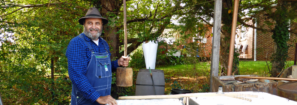 Lanes Rakes, one of the builders of this replica moonshine likker still, Franklin County Historical Society Museum