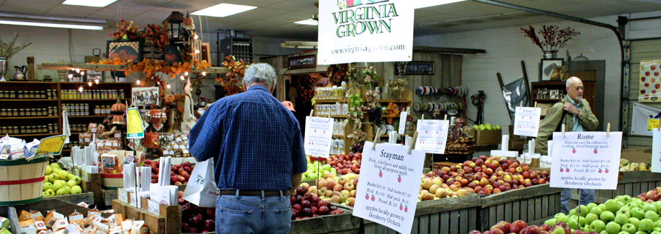 Virginia apples and other fruits, preserves and pickled goods are available in places like the fifth-generation family-run Ikenberry Orchards in Daleville.