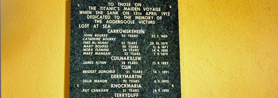This was also one of the hardest hit areas during the Great Famine since nearly all depended on the potato crop. It was in the village of Addergoole that we discovered a tragedy of Titanic proportions.
