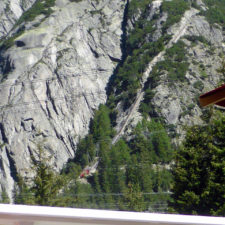 There were several options for our afternoon, like reboarding the post bus and traveling along the Grimsel Pass. We walked across the street and hiked to the Gelmerbahn funicular, a twelve minute 106-degree hair-raising ride on the steepest funicular in Switzerland. It leads to a scenic path around Lake Gelmersee.