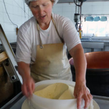 Barbara, molding cheese at Alpkäserei Handegg, Switzerland