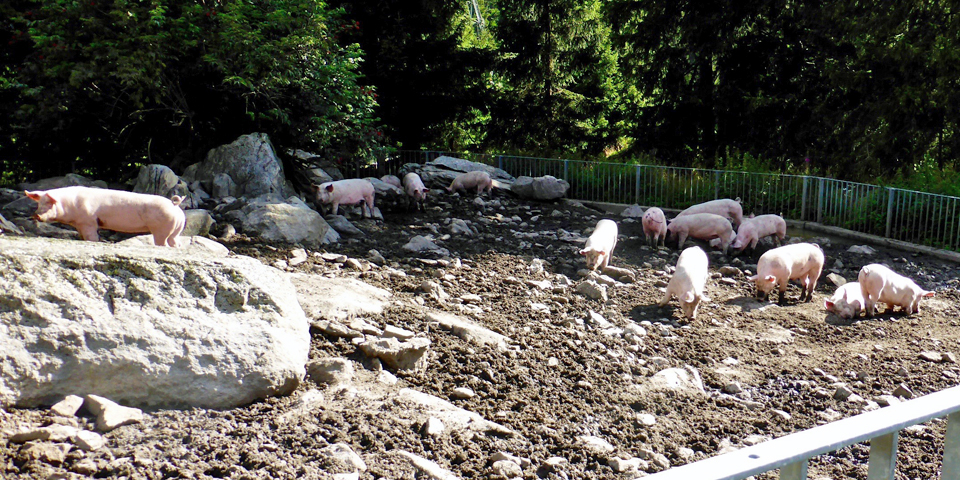 Our Untours guide joined us on the post bus and guided us up a little hill to the cheesemaker’s hut. Pigs in a large pen frolicked in the mud, plump from the cheesemaking by-products.