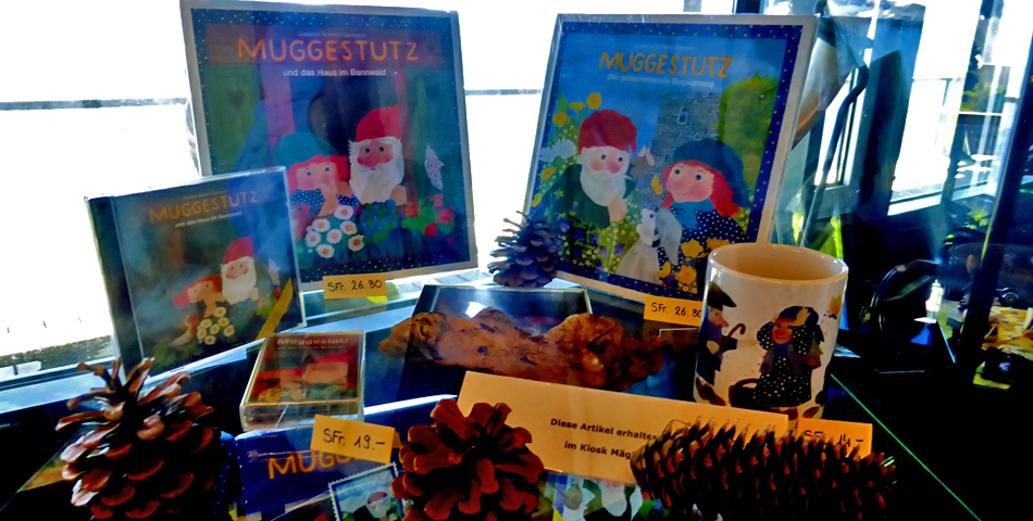 Muggestutz books on display at the Panorama Restaurant, Planplatten, Switzerland
