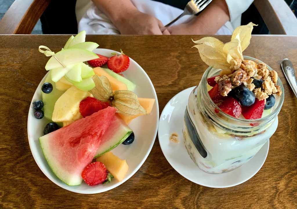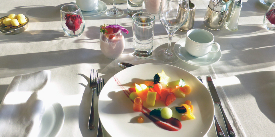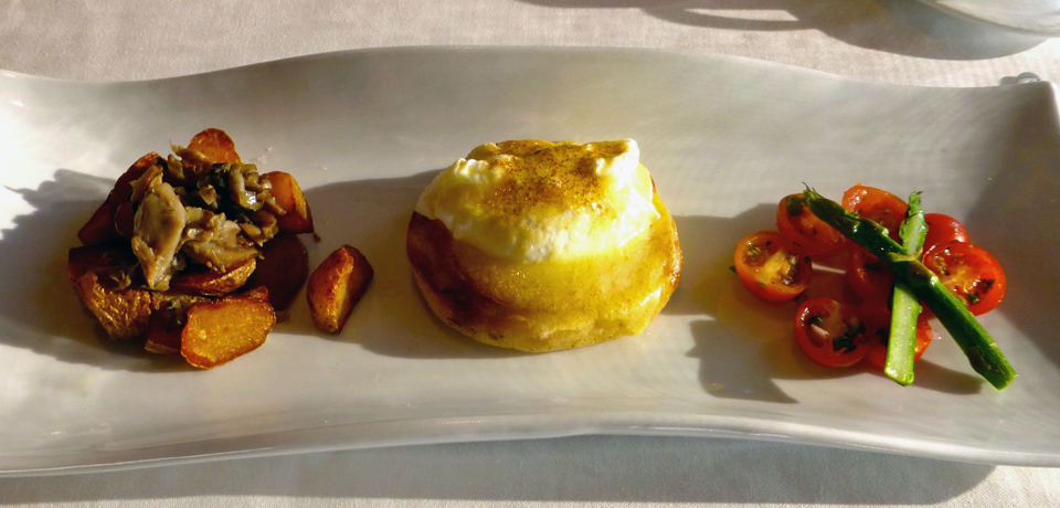 Eggs Benedict breakfast the clubhouse breakfast fruit plates are local art fois gras, Chef’s Table beef tenderloin, Chef’s Table fruit plate, Chef’s Table