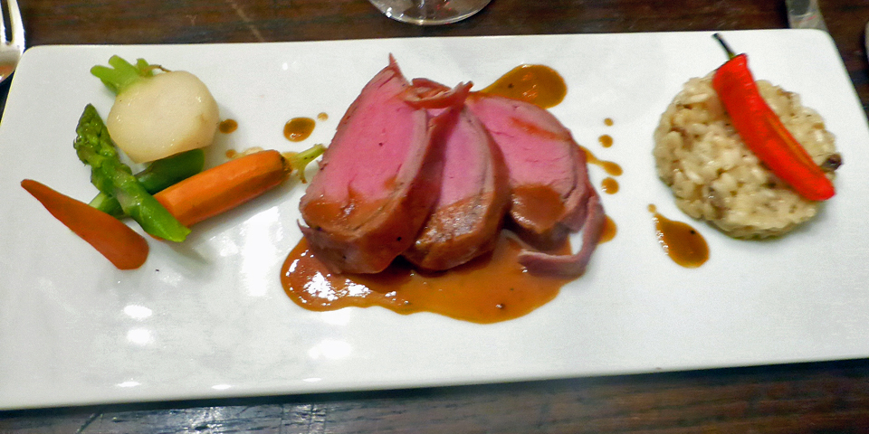 The kid on the menu is from the Sophie Talbot’s and Michel Nicole’s Ferme Caprivoix in Saint-Hilario. They specialize in goat and Highland beef production and Sophie is a founder of the Flavor Trail. Guided tours are offered in summer and prepared goods like sausages, cretons, pâtes, terrines and rillettes are sold here.