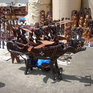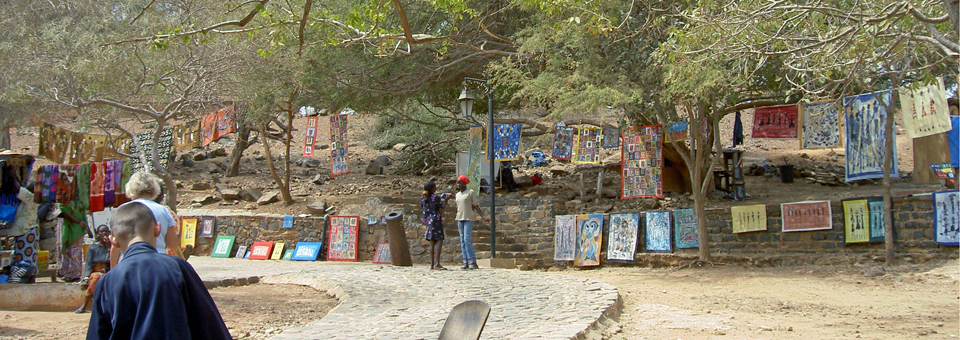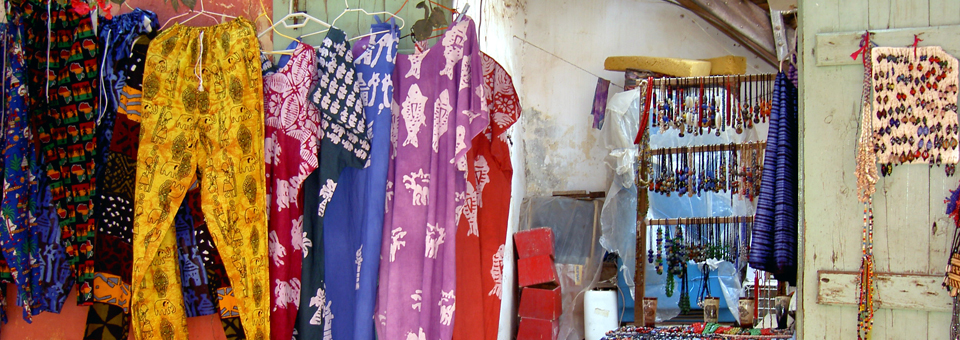 Shopping here is more laid-back than the markets of Dakar. There were colorful wares from throughout Africa — batik cloth, and caftans, jewelry, masks, sand paintings and wood carvings – for sale.
