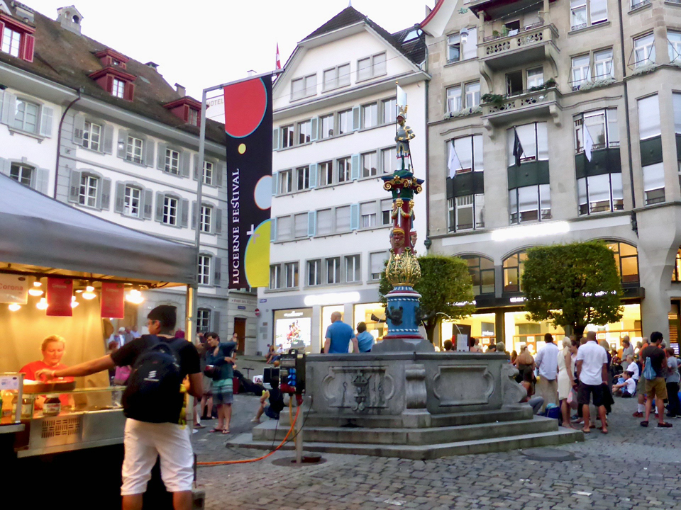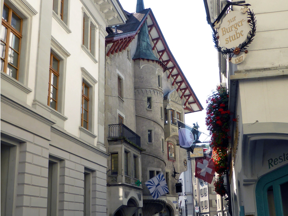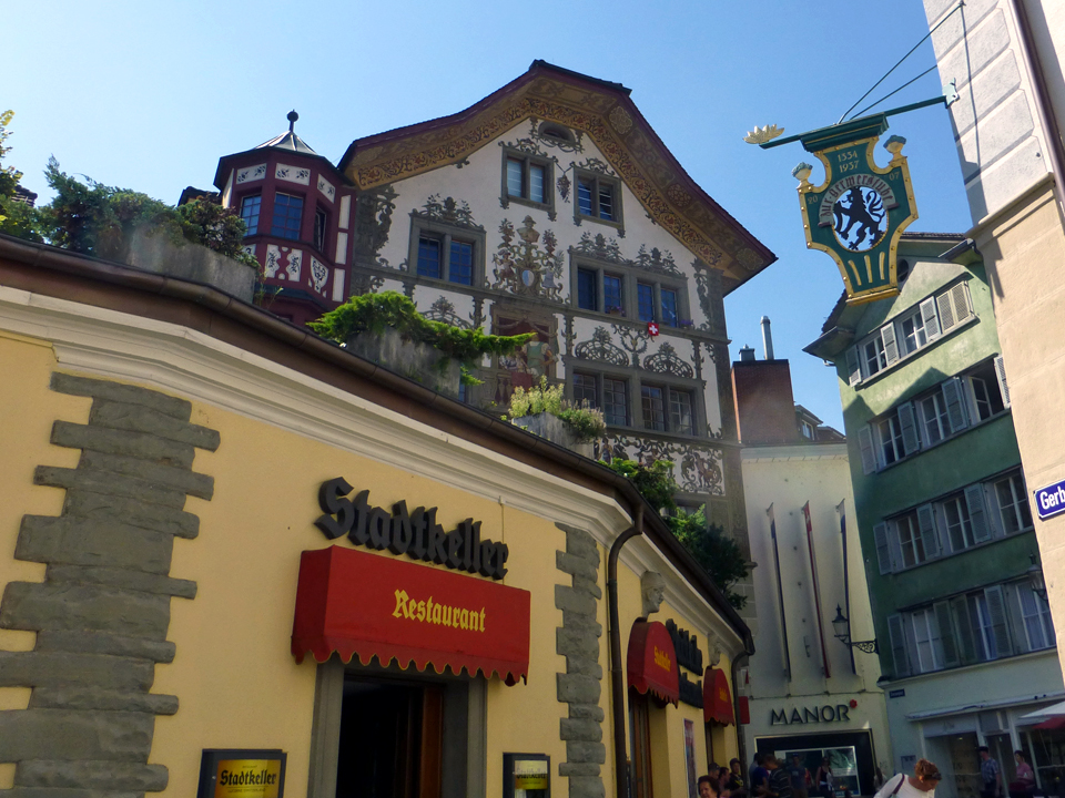 Depictions of Fastnacht adorn the facade of Restaurant Fritschi, known for good service and fondue, even in summer. Brother Fritschi gave money for wine to be served to the poor during Fastnacht, Lucerne’s renowned caelbration before Lenten fasting. A fountain bt Dt. Peter’s Chapel is dedicated to him.