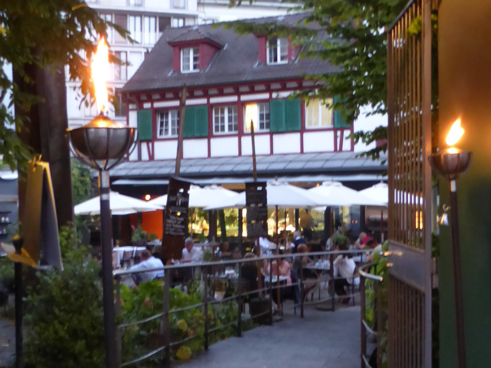 The Zunftrestaurant Pfistern is in a guild house by the river with a beautiful decorative facade. Its waterfront setting makes it a popular choice, especially for tourists, who love the charm of the Old Town.