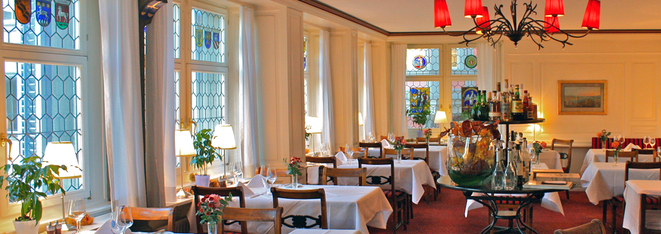 Many of Zürich’s fourteen preserved guild houses (Zunfthaus) are now fine restaurants. A top choice is Zunfthaus zur Waag, built in 1315, house of the guilds of linen weavers and wool weavers, united in 1440, and hatters. Meals are served in a Biedermeier-style dining room with splendid stained glass windows overlooking Münsterhof Square.