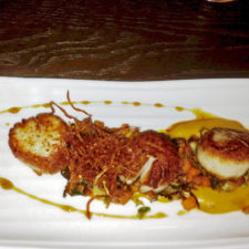 Brown Butter Seared Scallops starter with Brussels sprouts and sweet potato hash, Forge & Vine, Groton Inn, Groton Inn