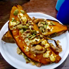 Loaded Sweet Potato with nuts, seeds, green onions, and goat cheese, Forge & Vine, Groton Inn, Groton, Massachusetts