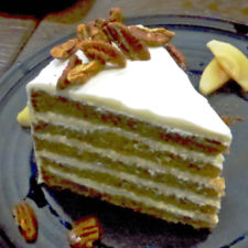 Spice Cake with cream cheese icing, buttered pecans, poached apples and bourbon ice cream, Forge & Vine, Groton Inn, Groton