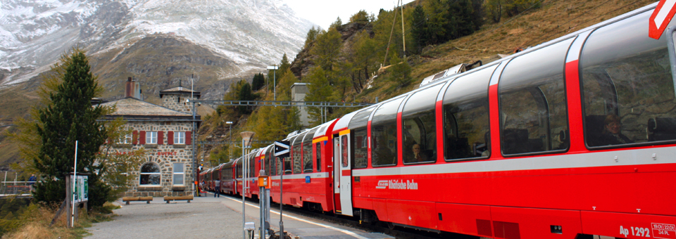 The Albula and Bernina engines use a different electric current and are changed in Pontracina. Since the opening of the Albula Railway in 1904 and Bernina in 1910 this Engadine area, which includes St. Moritz, has been renowned for mountaineering and skiing.