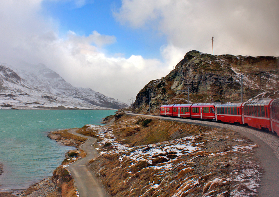 The Bernina Express links southern and northern Europe in a winding pathway that is a masterpiece of engineering–all without the use of cogwheels. It is a synergy of technology and nature designed to harmonize with the landscape, and is the third railway in the world to be designated a “universally outstanding” UNESCO World Heritage route. Seat reservations are mandatory.