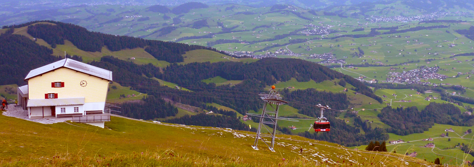 Hikers can enjoy simple mountain chalets that offer food and lodging. It’s a chance to meet farmers and sample local specialties. For a view without the trek there’s easier access from Schwägalp’s cable car to Appenzell’s signature mountain, Säntis, at 8200’ the area’s highest peak.