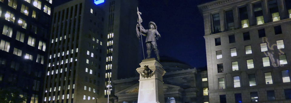 A monument to city founder Paul de Chomedey, Sieur de Maisonneuve (1612-1676) is on the center of the square. It marks the spot where settlers defeated Iroquois warriors. De Maisonneuve fought the Iroquois chief.
