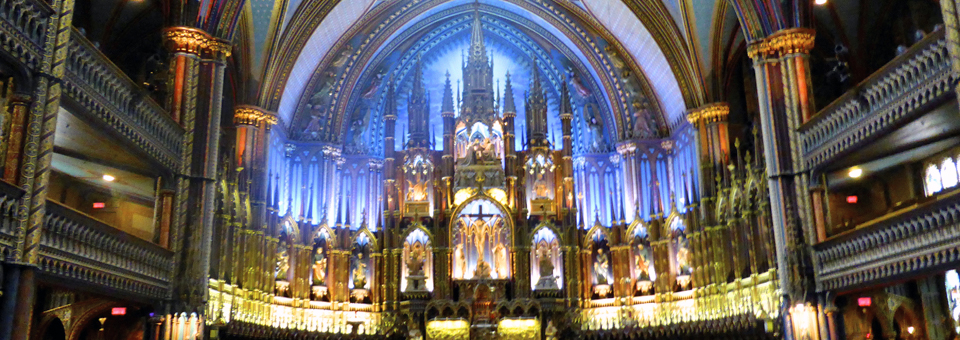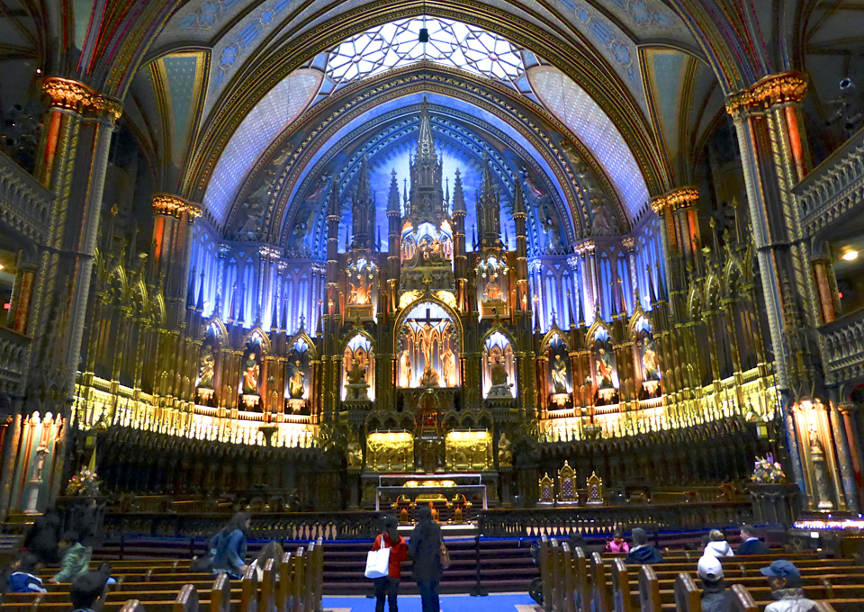Old Montréal’s centerpiece is Notre Dame Basilica (1823). The interior wood carvings took forty years to complete. The architect was so moved by its beauty he converted to Catholicism. Céline Dion’s wedding was held in the chapel, which has 32 bronze panels representing birth, life, and death.