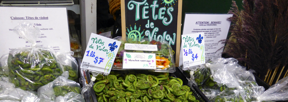 Montréal has several food markets where you can taste your way through an array of local foods. We visited the largest, the 3 1/2 block Jean-Talon. The number of Vermont license plates seen there is indicative of its allure. It’s a great way to assemble an inexpensive meal of cheeses, meats, and prepared foods or to find gifts and souvenirs like mustards, Crème de Cassis, ice cider or black pepper with crystalized maple.