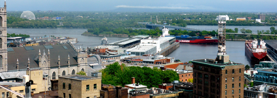 Our guest room in this towering and turreted hotel overlooked historic Old Montréal and offered us views of Notre Dame Basilica to the left and the Old Port area where, in a few days, we would board the Maasdam straight ahead. Across the river were two remnants of Expo 67, the 1967 World’s Fair. The environment museum Biosphère is in the geodesic dome framework of the U.S. pavilion and Habitat 67, the innovative affordable housing development, is now an upscale apartment complex.