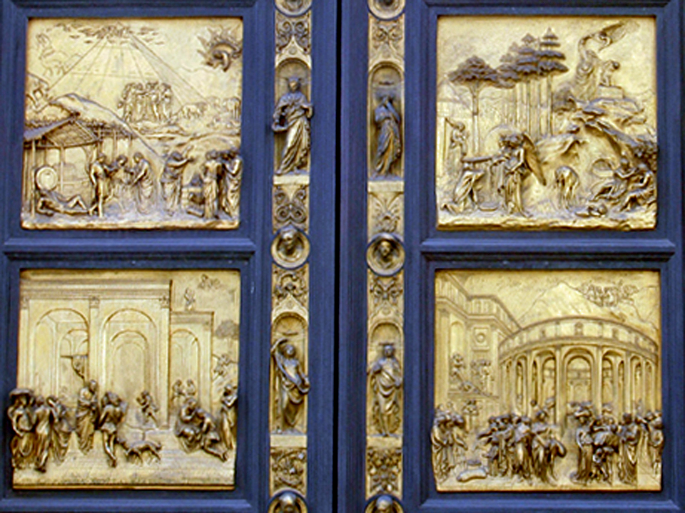 The 21-year-old Florentine goldsmith Lorenzo Ghiberti’s design was chosen for the north doors of the Baptistry. Ghiberti went on to create the east doors facing Duomo, the famed gilded bronze Gates of Paradise, completed 10 years before he died.