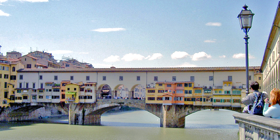 Stroll Medieval Florence between Piazza della Signoria and Duomo, and stroll along the Arno River to the Ponte Vecchio. Florence’s oldest and most famous bridge has been home to gold and silver shops since 1593 when Cosimo de Medici I ousted the butchers who had been there over 150 years. Look up to see the Medici’s private passageway connecting Pitti and Uffizi Palaces.
