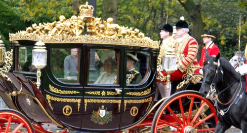 Queen Elizabeth and Prince Philip ride to the State Opening of Parliament in this Irish State Coach.
