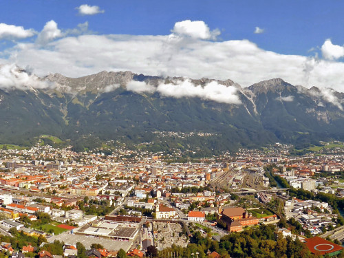 Innsbruck, Austria from the viewing platform of the Bergisel Ski Jump Stadium, Innsbruck, Austria