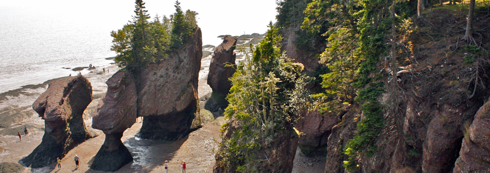 Then we were off to Hopewell Rocks, timing our visit for low tide when we could walk on the ocean floor. Low tide exposes 300 million year old rock formations with sandstone bases that have been eroded by waves and angled by the earth’s movement, creating shapes now called Flowerpot Rocks. Once the world’s highest tides roll in, kayakers head out to paddle past the rocks’ treed tops.