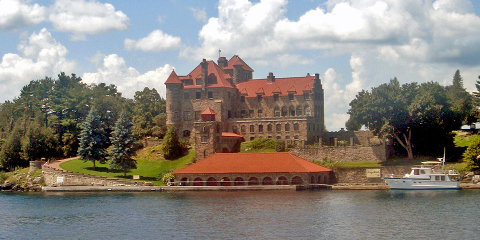 The area was a playground of the rich and famous—people like the Astors, Helena Rubenstein, Irving Berlin, Mary Pickford, and railroad sleeper car designer George M. Pullman, who entertained U.S. President Grant and General Sherman. Many of the turn-of-the-century elite bought their own islands and built extravagant summer homes to flaunt their social status, creating an area along the river known as Millionaires’ Row. A Rhine-style castle complex with 24 spires and 120 rooms was built by romantic hotel magnate George C. Boldt, proprietor of the Waldorf-Astoria, on an island he reshaped and named Heart for his wife, Louise, who died before its completion.