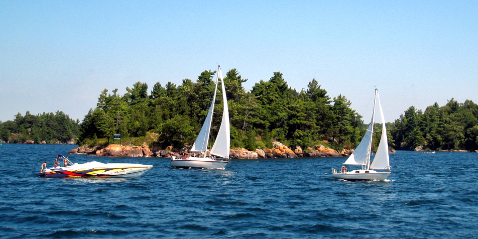 The islands -— over 1800 of them within a 50 mile area of one of the world’s largest rivers -— are the glacier-flattened tops of a chain of mountains that link Ontario’s Canadian Shield to New York State’s Adirondacks. They are divided between Canada and the United States.