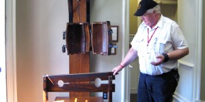 Waterboarding equipment, used as part of early prison discipline, is displayed at the Kingston
