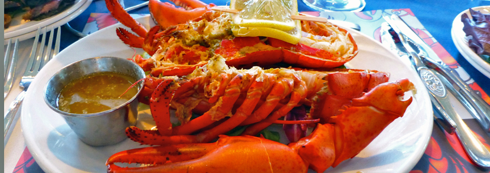 our dinner — “homard à volanté”, all-you-can-eat lobster, at the Riôtel Percé in the Gaspé Peninsula