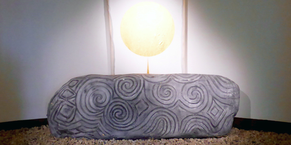 The original rocks were stacked without mortar to form a domelike central chamber that is surrounded by three smaller chambers. The rock carvings, typically lozenges (diamond shapes), chevrons (zigzags), and spiral ring designs, are thought to be more than an ornamental art form and an early form of writing.