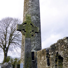 The 18’ high sandstone Cross of Muiredach, also known as the South Cross, is named for an abbot who is in its inscription. It is the country’s finest High Cross and one of the best examples of Irish religious art. The West Cross is the tallest in Ireland. There is also a rare headstone on the grounds that is inscribed with three languages. It is one of just two such headstones in the world.
