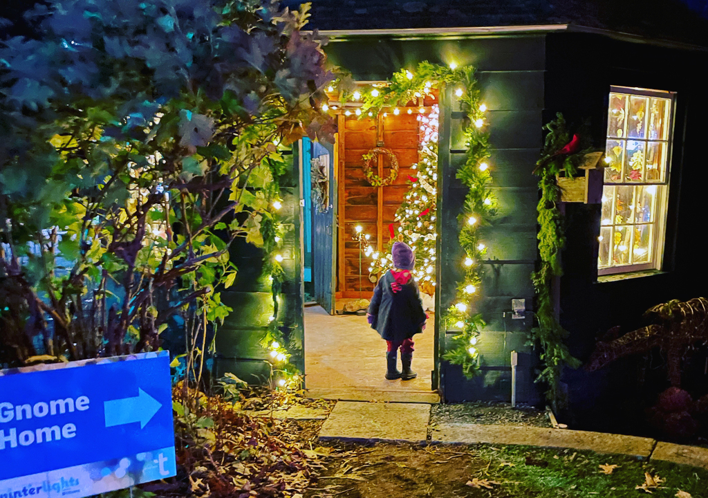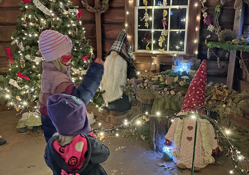 “Look! There’s a gnome’s home!” my 7 year-old granddaughter, Vera, called excitedly to her 3 year-old sister, Valerie, knowing that Valerie wanted nothing more than one of these mythical creatures for Christmas. They were captivated once inside the brightly decorated little hut at this annual holiday event. The magic of the season had begun.