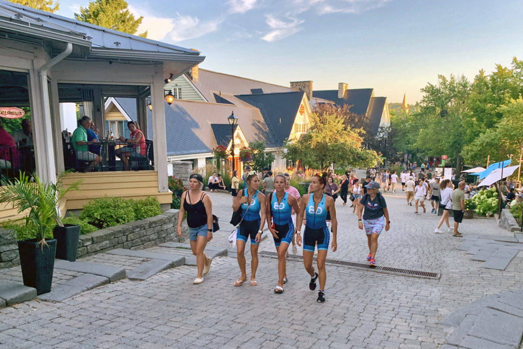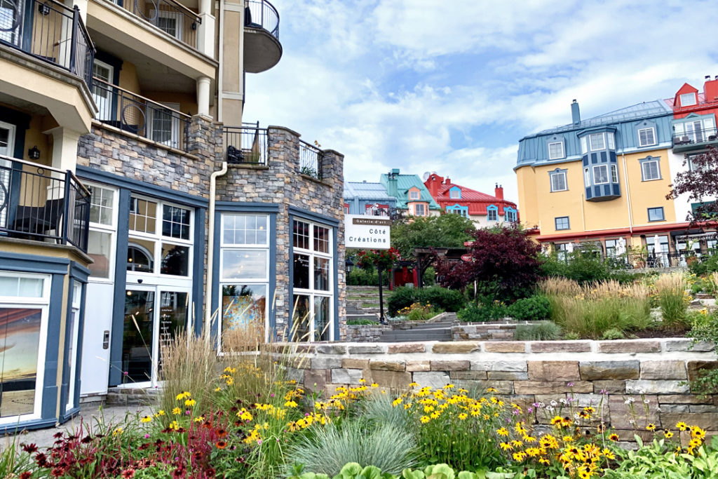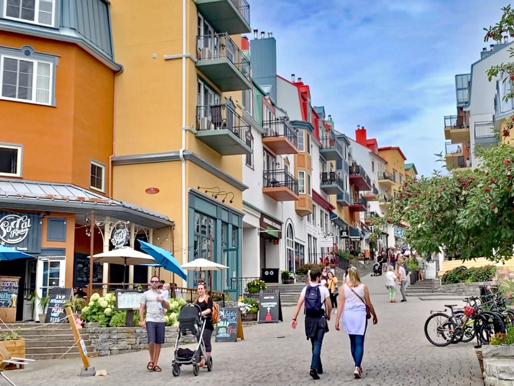 The shops, restaurants and hotels along the winding streets of the pedestrian-only village exude a blend of European and Québecois style. Vibrant colors and the range of activities create the excitement of an upscale theme park.