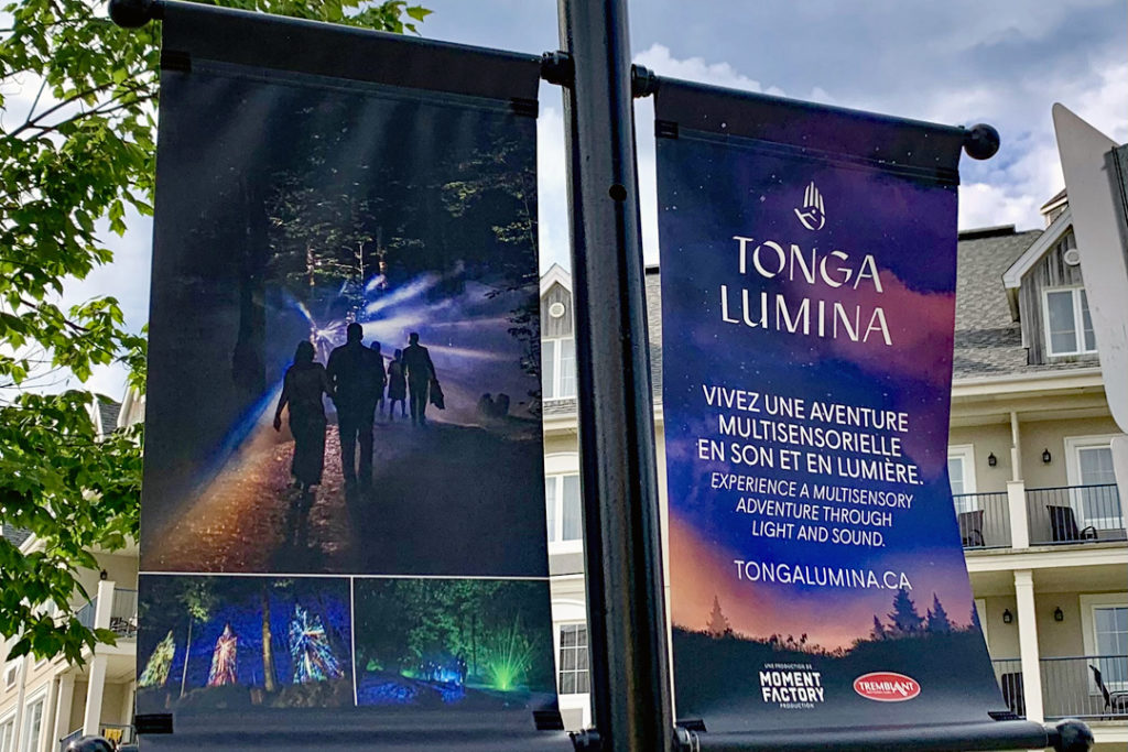 The sound and light show known as Tonga Lumina Tremblant | A night walk in search of the giant depicts the legend of Mont-Tremblant, the trembling mountain. To get there ride the Flying Mile Chairlift to the trailhead’s illuminated mile-long trail and take a stone dust pathway downward through the woods. Learn the secrets of the last mythical giant, the wise and revered protector of the flora, fauna and rivers and how his wrath makes the mountainside shudder when someone disobeys the laws of nature.