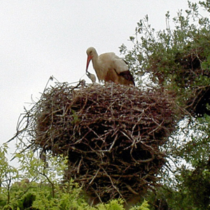 Storks swoop down on the menagerie of nests perched high on the ruins, bringing tidbits to tiny mouths.